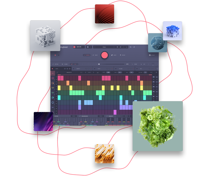 Playbeat's new algorithmic approach allows for unlimited remixes of patterns based on existing sequences, seamlessly adapting to an entire song. Samples can be edited on the spot, and fresh sets of remix patterns can be generated endlessly. The highly acclaimed multi-functional keyboard enables the triggering of individual sounds, pattern sequences, or full drum grooves with ease.
