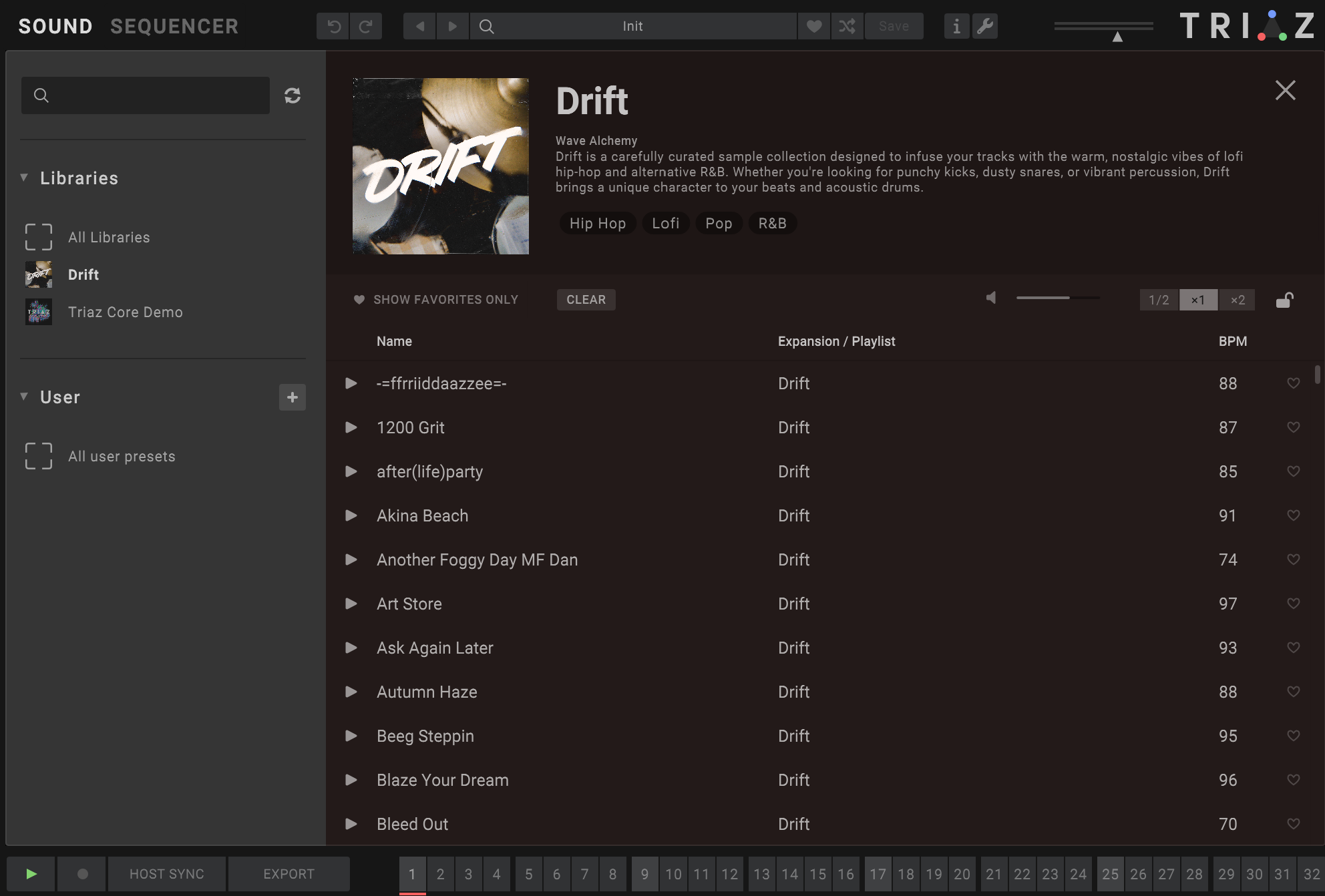 6. Load Triaz / Triaz Player > find all the Drift presets within the Triaz Preset Browser