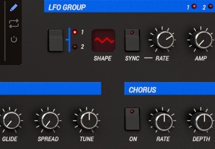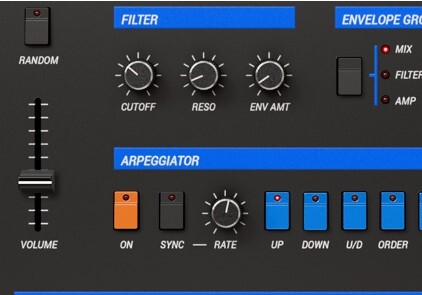• 6-pattern arpeggiator with Gate, Note Repeat, and Octave controls
