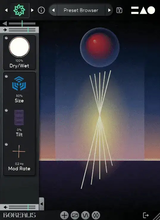 BOREALIS is a dynamic reverb plugin designed for the studio, stage, and beyond. It transcends conventional reverb plugins by allowing you to create an interplay between your dry input and its wet output, using its envelope follower and unique modulation possibilities.