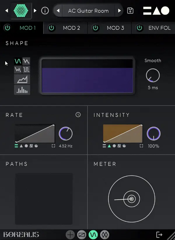 BOREALIS allows you to manipulate a myriad of parameters simultaneously for expressive results with a user-friendly animated interface with 3-axes macro controls.