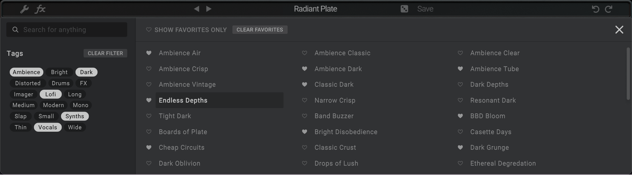 From dark and moody, to beautifully vibrant and airy, Radiance’s plate models cover a wide sonic spectrum.
