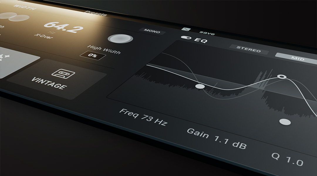 - Add depth and space with dual-band stereo width controls