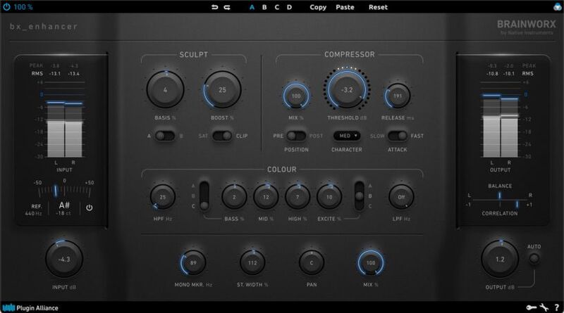 Brainworx's bx_enhancer is an all-in-one plugin for mixing individual tracks and groups, integrating the three most essential mixing tools into one package. These include a saturator, compressor, and EQ, each typically applied directly to a track to enhance sound quality. There’s also a built-in clipper capable of harmonic distortion. With reverb and delay set up on aux tracks, bx_enhancer provides all the features necessary to mix a song from start to finish while infusing it with analog vibes.