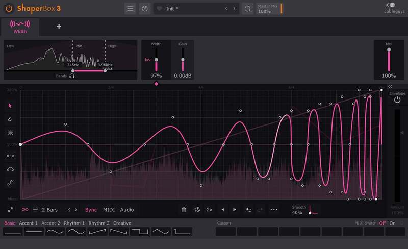 Running inside Cableguys' ShaperBox 3 effects plugin, use WidthShaper on its own or with other Shapers — they all work in exactly the same way, stacking up to create elaborate, multilayered effects that'll make your productions stand out.