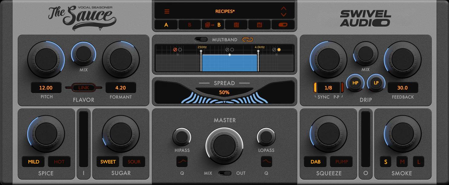 The Sauce is Swivel Audio’s premier creative tool for dramatic vocal processing, bringing you all the essential ingredients you need to creatively transform your vocals in one simple plugin. Oh, and it sounds great on drums and instruments, too. Find your flavor with The Sauce now!