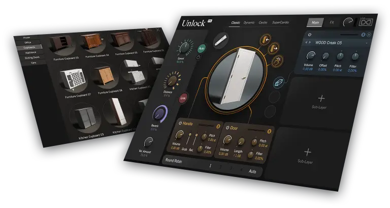 Unlock delivers a flexible and easy-to-use sound design tool giving you everything you need to create incredibly detailed and realistic open, shut, and knocking sounds for doors of nearly every size, build, and environment. With a massive library or professionally recorded samples, Unlock delivers an epic collection of door and auxiliary sounds such as creaks, squeaks, locks, handles, sliding and rolling, air, metal, drag, bells, glass, and wood, which can be layered, tweaked, and finalized with effects to create the perfect sound for your production.