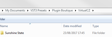 2. Once the folder has opened, create a new folder within the existing VirtualCZ ‘VST Presets’ directory.