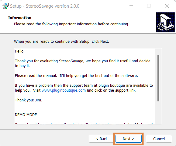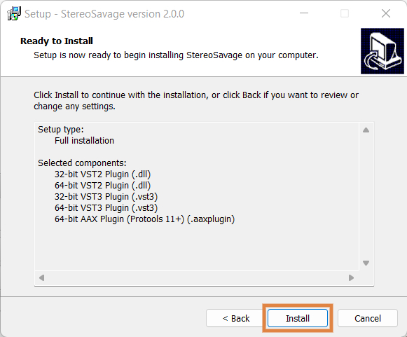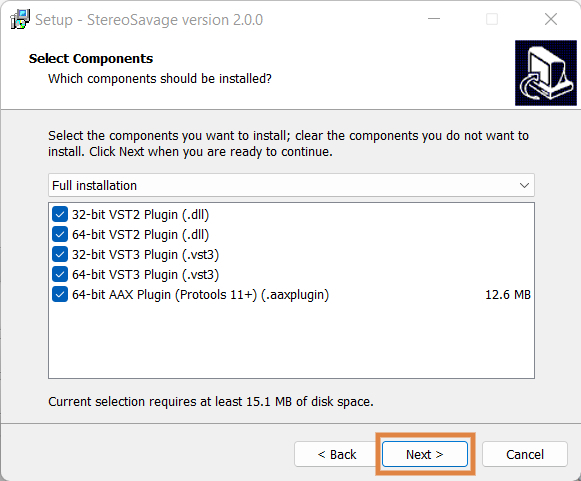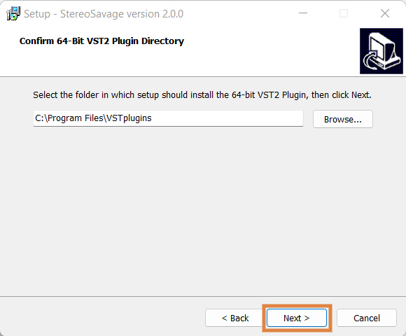 6. Confirm the 64-bit plugin directory in which to save StereoSavage to > click ‘Next’.