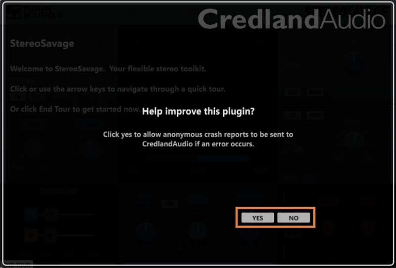 2. Click 'YES' or 'NO' if you want to send crash reports to CredlandAudio if any errors occur.