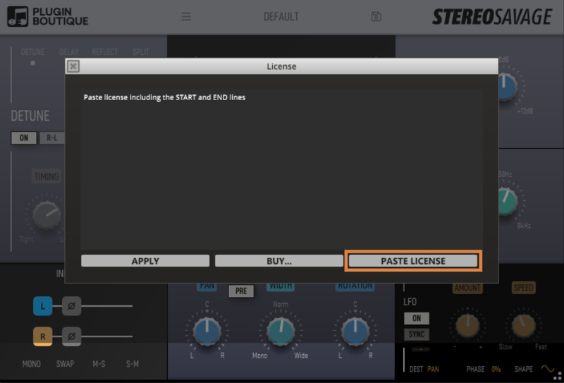 7. Click 'PASTE LICENSE' in the registration window.