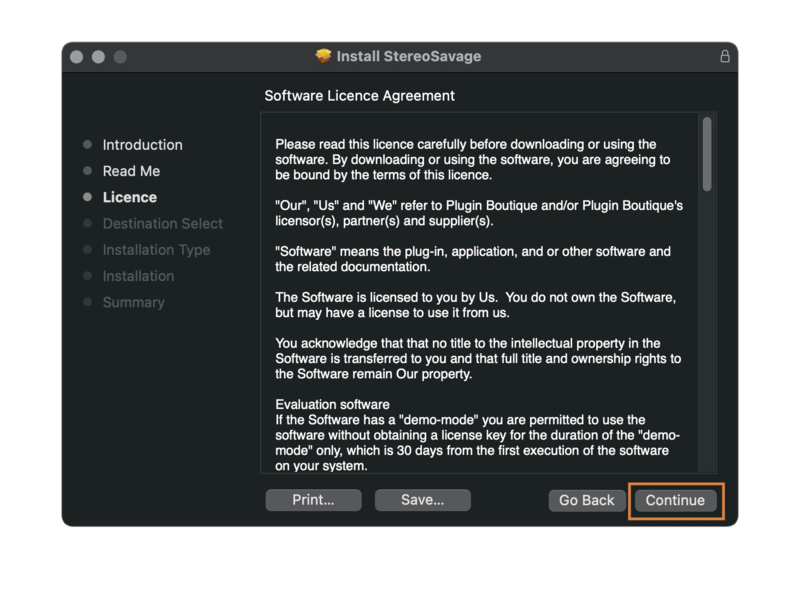 5. Read through the License Agreement > click 'Continue'.