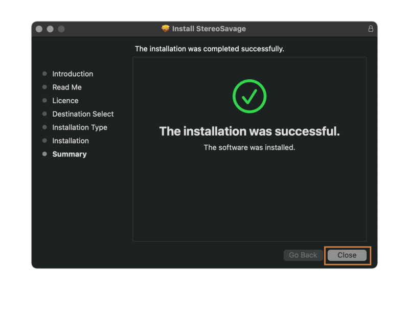 9. Click 'Close' to exit the installation window.