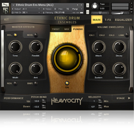 Mix and shape your sound using Heavyocity’s proprietary interface containing global effects (reverb, delay, distortion, and chorus mod), per-drum EQ, per-channel ADSR, TriggerFX, and the signature Punish and Twist knobs.