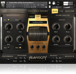 Ensemble Drums - Loops contains over 300 tempo-synced phrases arranged in menu and single loop presets. As an exciting new feature, the content is now divided into straight and triplet loops. It is a veritable “Barrage - à - Trois”. Rearrange and adjust the loops by slice with Heavyocity’s signature “Loop Mutator”. Dial in the Trigger FX, master effects, filter modulation and ADSR for radical sonic results.