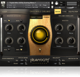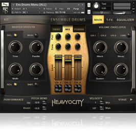 Mix and shape your sound using Heavyocity’s proprietary interface containing global effects (reverb, delay, distortion, and chorus mod), per-drum EQ, per-channel ADSR, TriggerFX, and the signature Punish and Twist knobs.