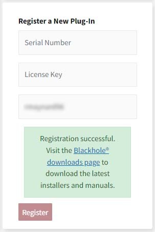 5. In the bottom right corner of the page, enter the license key (format 1234-1234-1234) found in your Plugin Boutique account, as well as your iLok Account User ID > Click 'Register'. Please note: a Serial Number is now not required