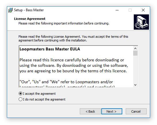 4. Read the license agreement > Select 'I accept the agreement' and click 'Next'.
