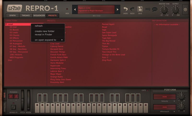 7. Once all your new presets are in place, go back to the plug-in, right-click on the Preset Browser folder list again and select refresh from the popup menu. You should now see your new presets in the list.