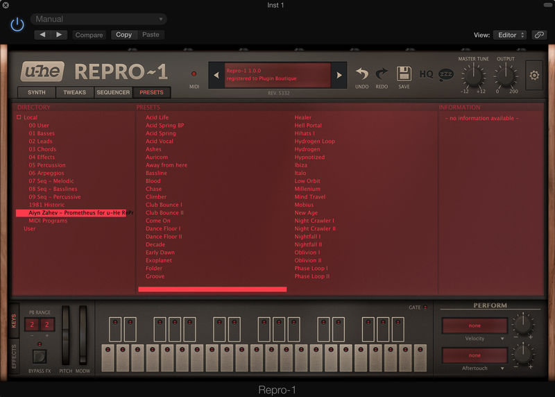 Important Note: u-He Repro-5 version 1.1 or later is required to run the contents of this product.