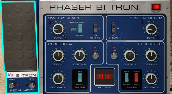The expression pedal feature lets you manipulate both LFO rates and both Phasor circuits, with the additional option of envelope control.