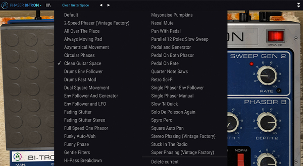 A curated selection of 37 presets, giving you instant access to the double-barrelled energy of Phaser BI-TRON.