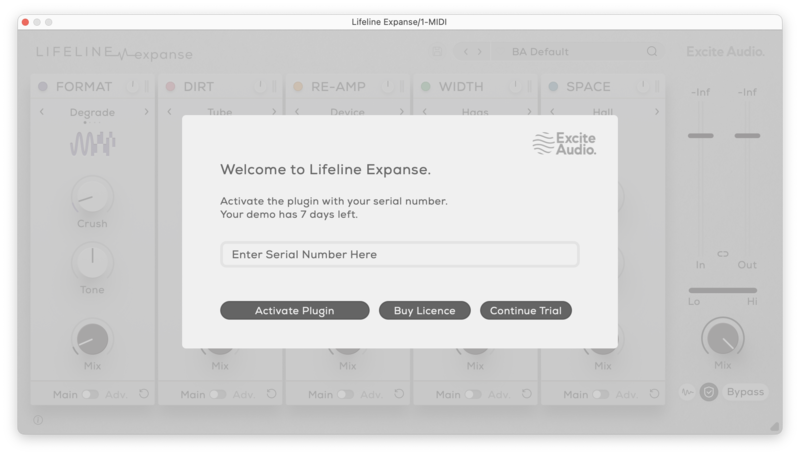 2. Open Lifeline Expanse in your DAW > Paste your serial number > Click 'Activate Plugin'.